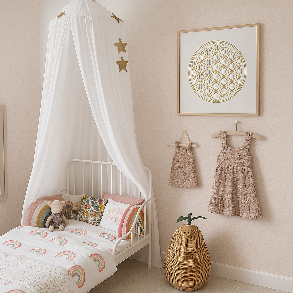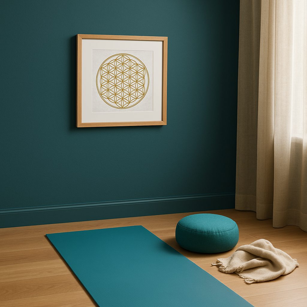 This vibrant poster with gold print of the Flower of Life combines aesthetic beauty with energetic balance.